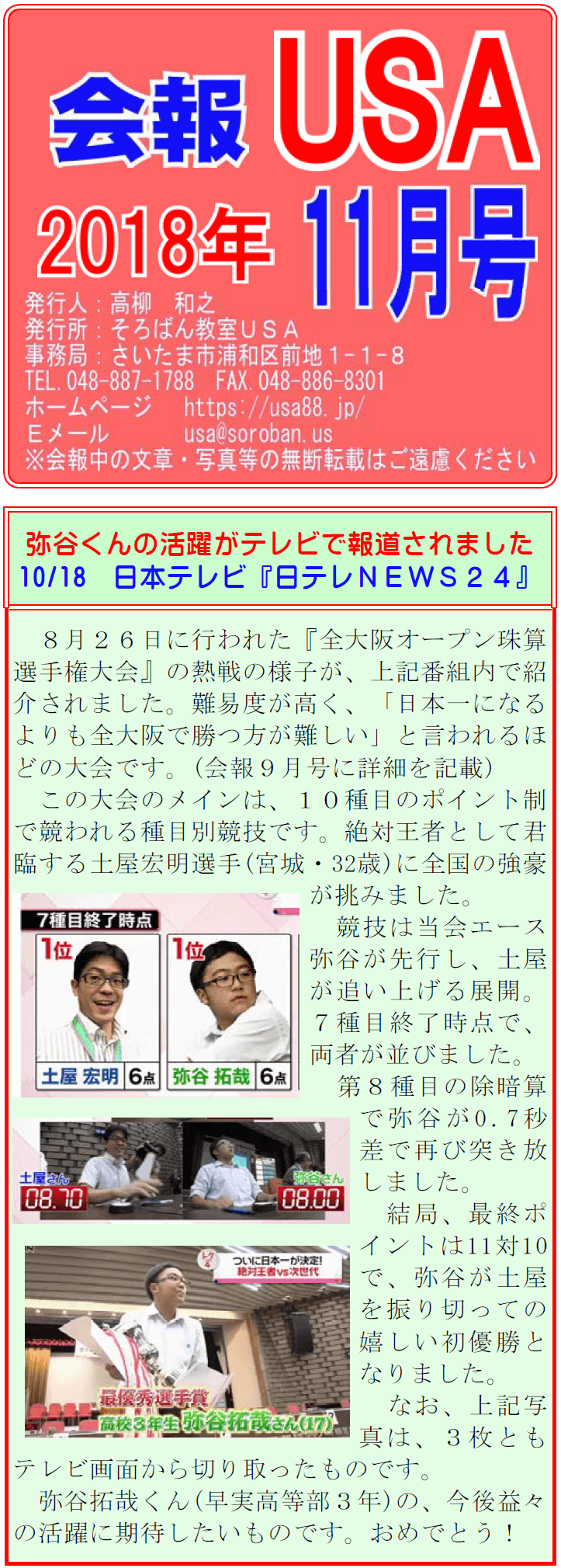 【会報USA:2018年11月号】