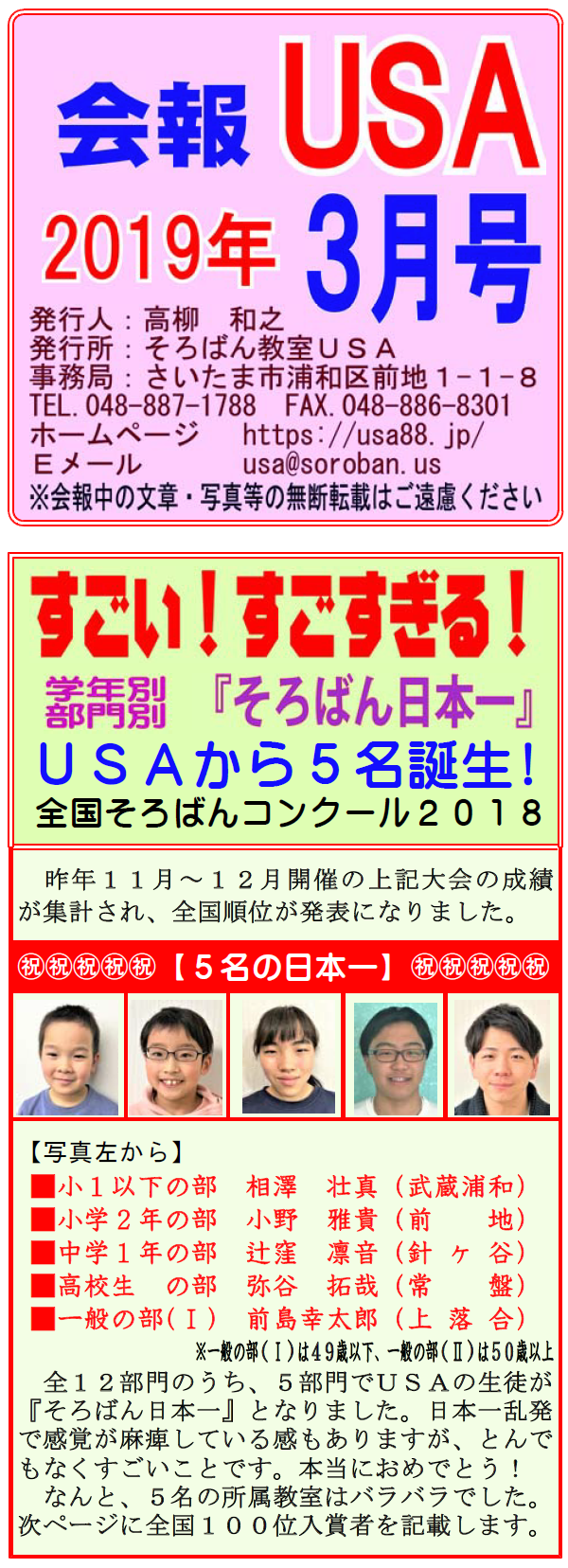 【会報USA:2019年3月号】