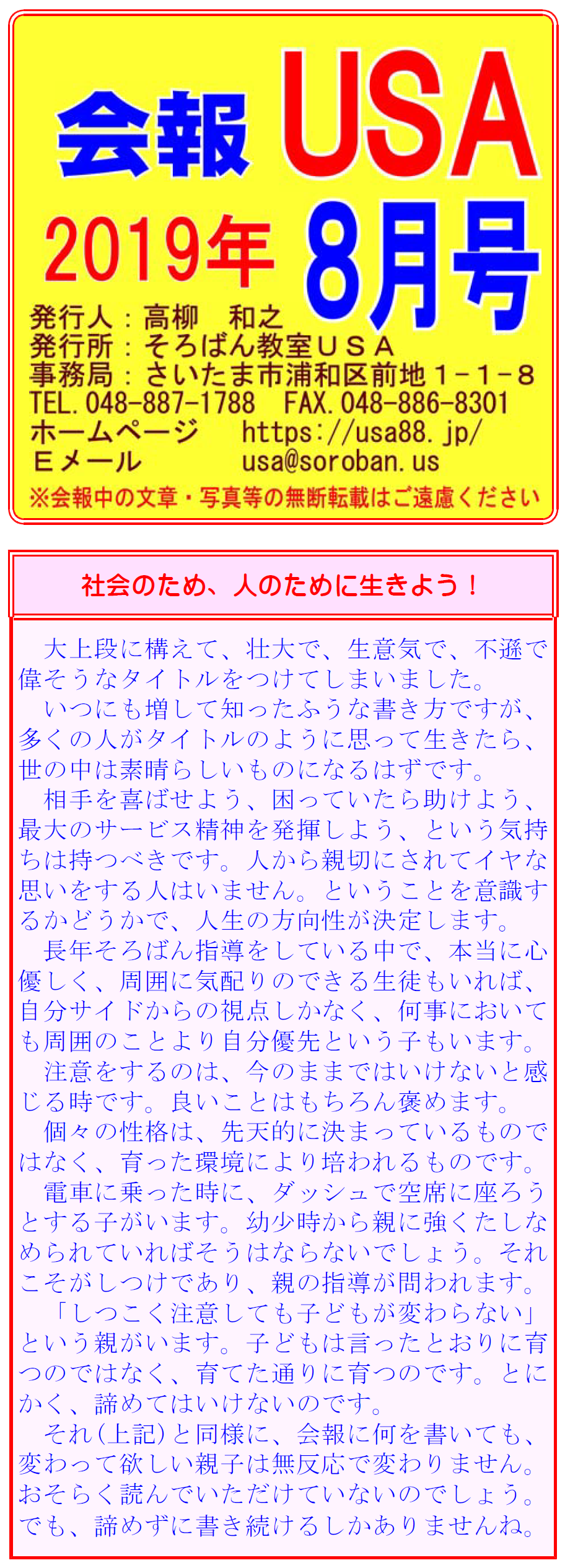 【会報USA:2019年8月号】