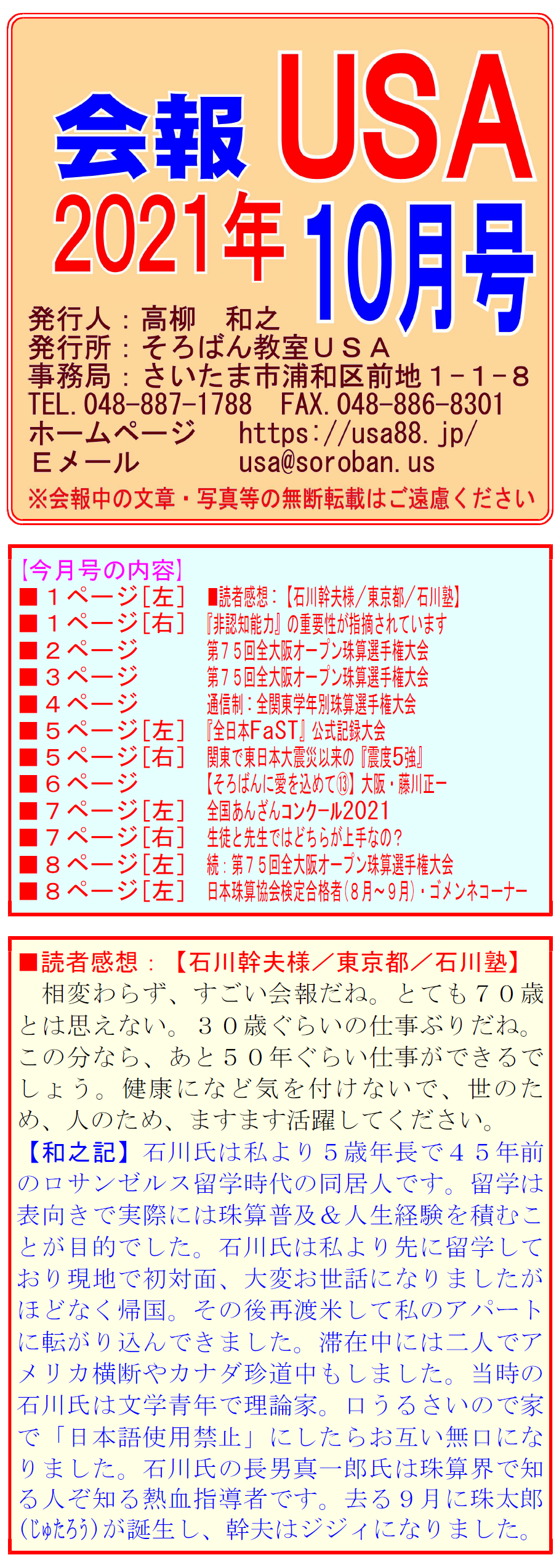 【会報USA:2021年10月号】